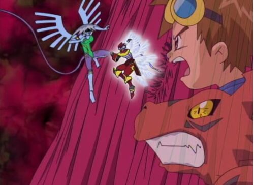 ラスト・バトルとなれば、セントガルゴモンの中国拳法を見せない訳にはいかない。セントガルゴモン初登場37話も梅澤演出・出口作監回だった。 無力状態となったサクヤモンに、リーパーの鎌が襲いかかる! 動けないサクヤモン――。 まかせてー。 テリアモンは…